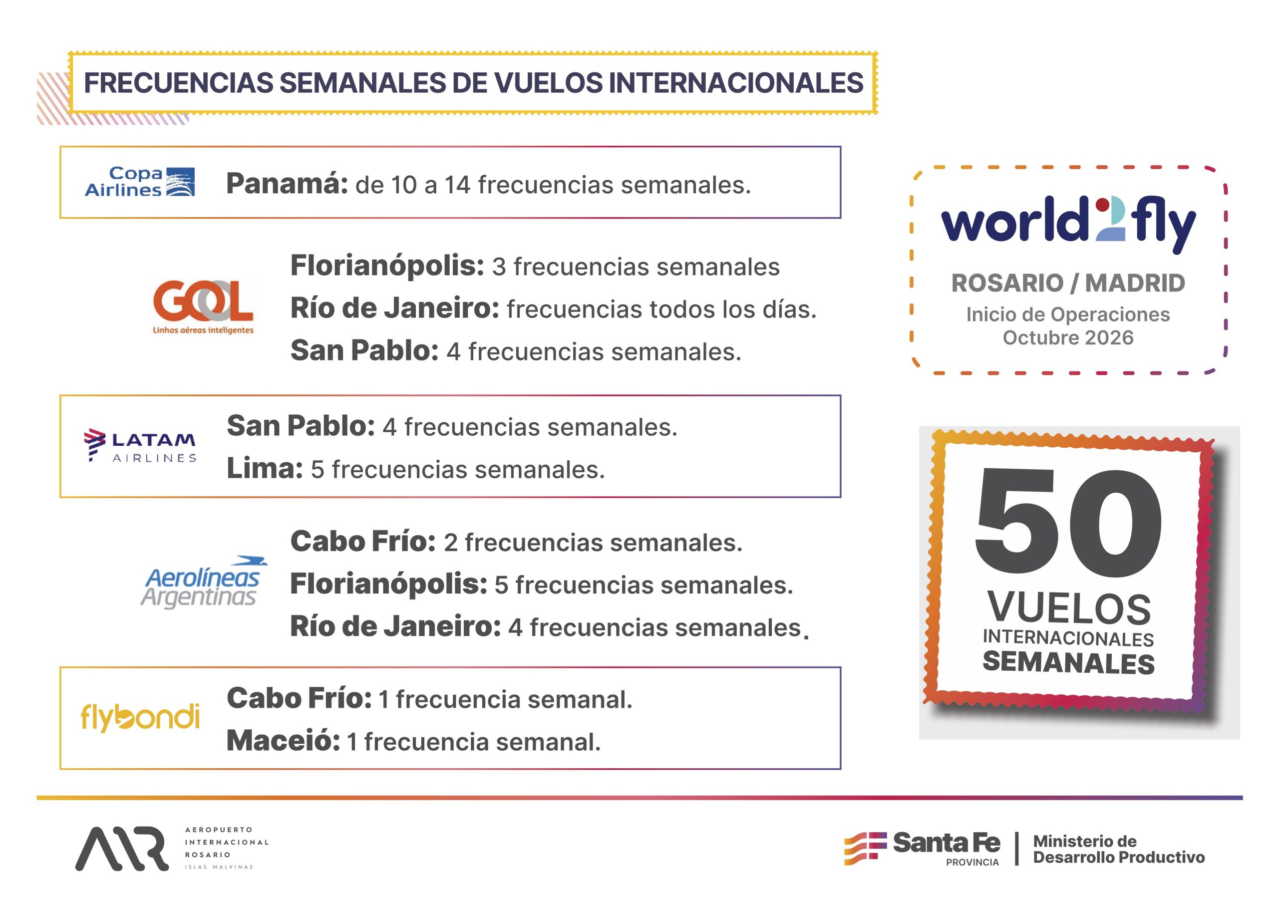 Leer másEl Aeropuerto Internacional de Rosario se prepara para una temporada con récord de conectividad aérea: 50 frecuencias semanales hacia siete destinos [...]
